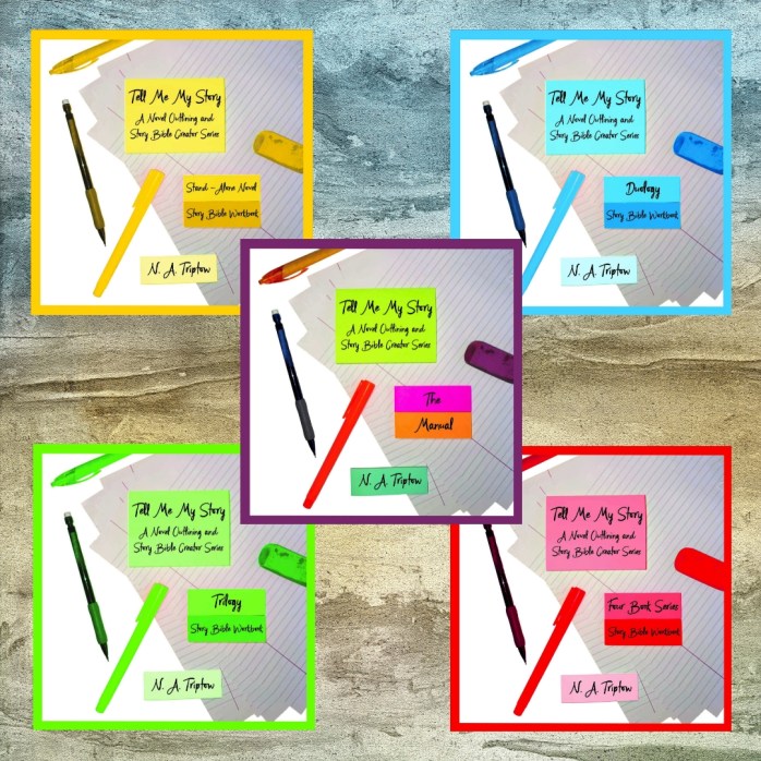 The rest of the books in the series provide prompts and enough space to outline and create a story bible for a single novel up to a four book series.